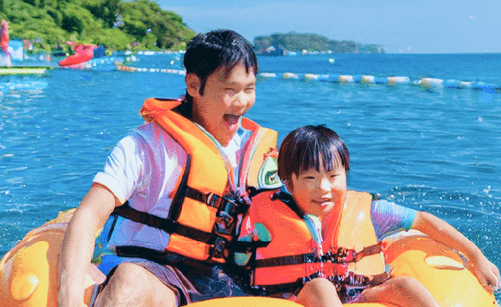 - 受付後、ライフジャケット交換タグをお渡しいたします。 隣のライフジャケットルームにてタグ札をスタッフに渡し、 自分の体に合ったライフジャケットを受け取ってご着用ください。 スタッフがサポートします!