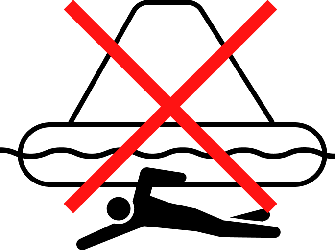 飛び込み用の遊具から飛び込んだり、滑ったりする場合は周りを確認し、着水エリアからすぐに離れるようにしましょう。